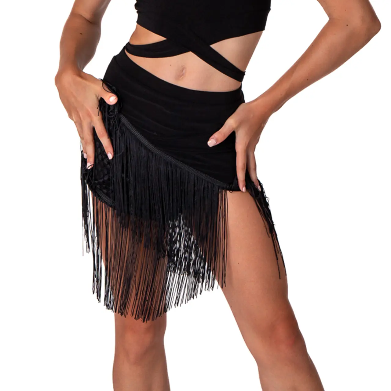 Hinten ist das Röckchen gerade, die Fransen säumen seine Linie schön. Ein elastischer, flacher Bund sorgt für angenehmes Tragen und Bewegungsfreiheit beim Training oder bei einem Tanzauftritt.