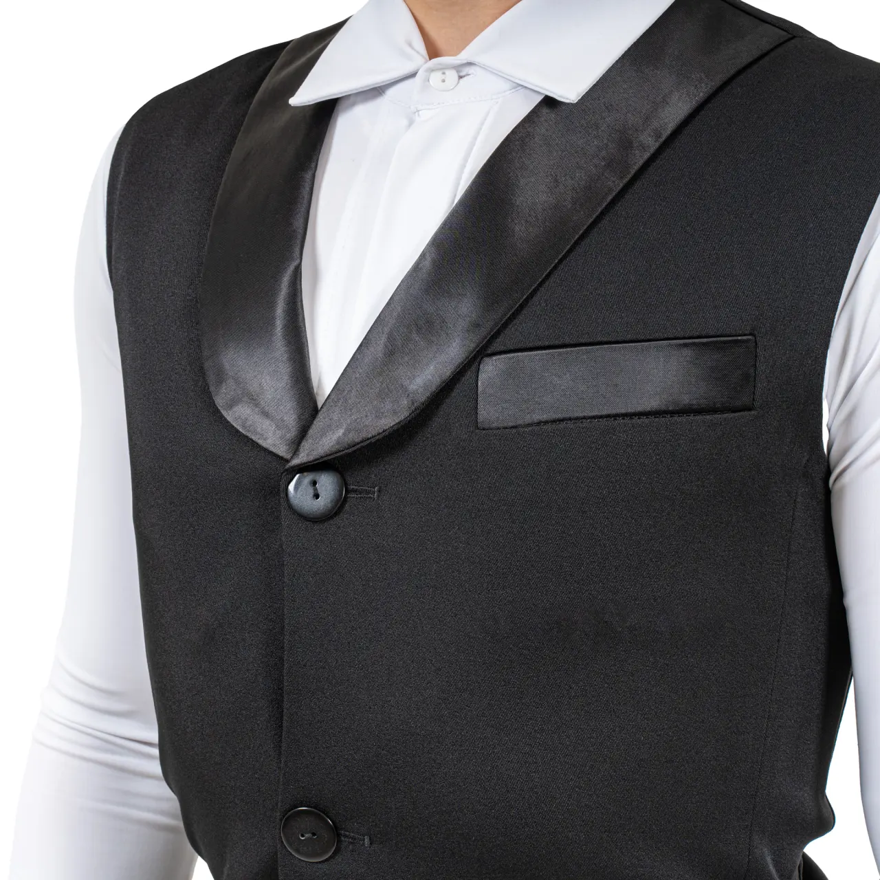 Herrenweste für Standard Eliot, mit Revers, die mit feinem Satin eingefasst sind, verleiht dem Erscheinungsbild des Tänzers ein elegantes und luxuriöses Aussehen.
