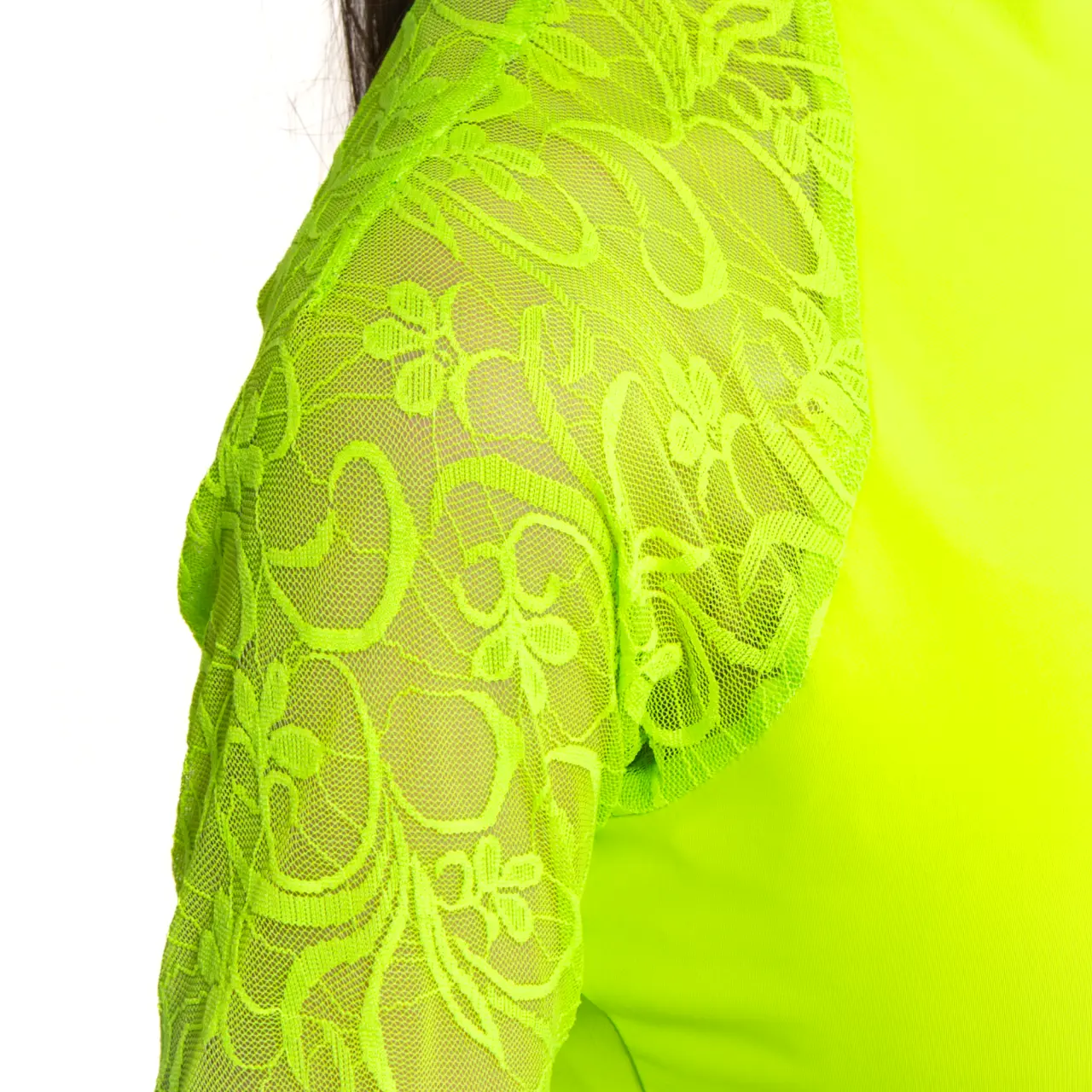 Die Ärmel sind aus feiner Spitze, die dem Gesamtlook einen Hauch von Raffinesse und Zartheit verleiht. Dank der leuchtenden Farben wird Ihr Kind bei jedem Tanzauftritt garantiert Aufmerksamkeit auf sich ziehen.