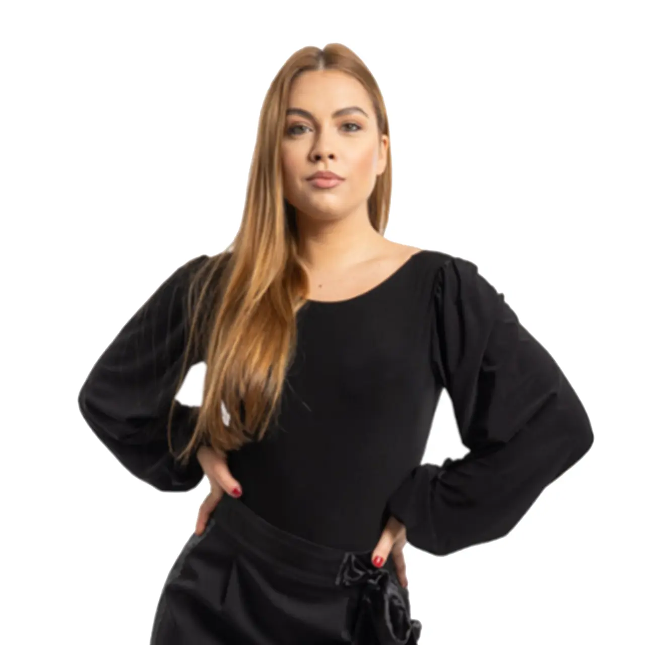Die Verbindung von Stil, Komfort und Funktionalität in einem Produkt, das jeder Drehung, jedem Schritt und jeder Bewegung Charme und Selbstbewusstsein verleiht. Body mit Druckknöpfen Kamila berücksichtigt Weiblichkeit, die Körpersilhouette und Bewegungsfreiheit. Der U-Boot-Ausschnitt an der Vorderseite verleiht Eleganz, während ein etwas tieferer Rückenausschnitt die Halslinie und die Körperhaltung betont.