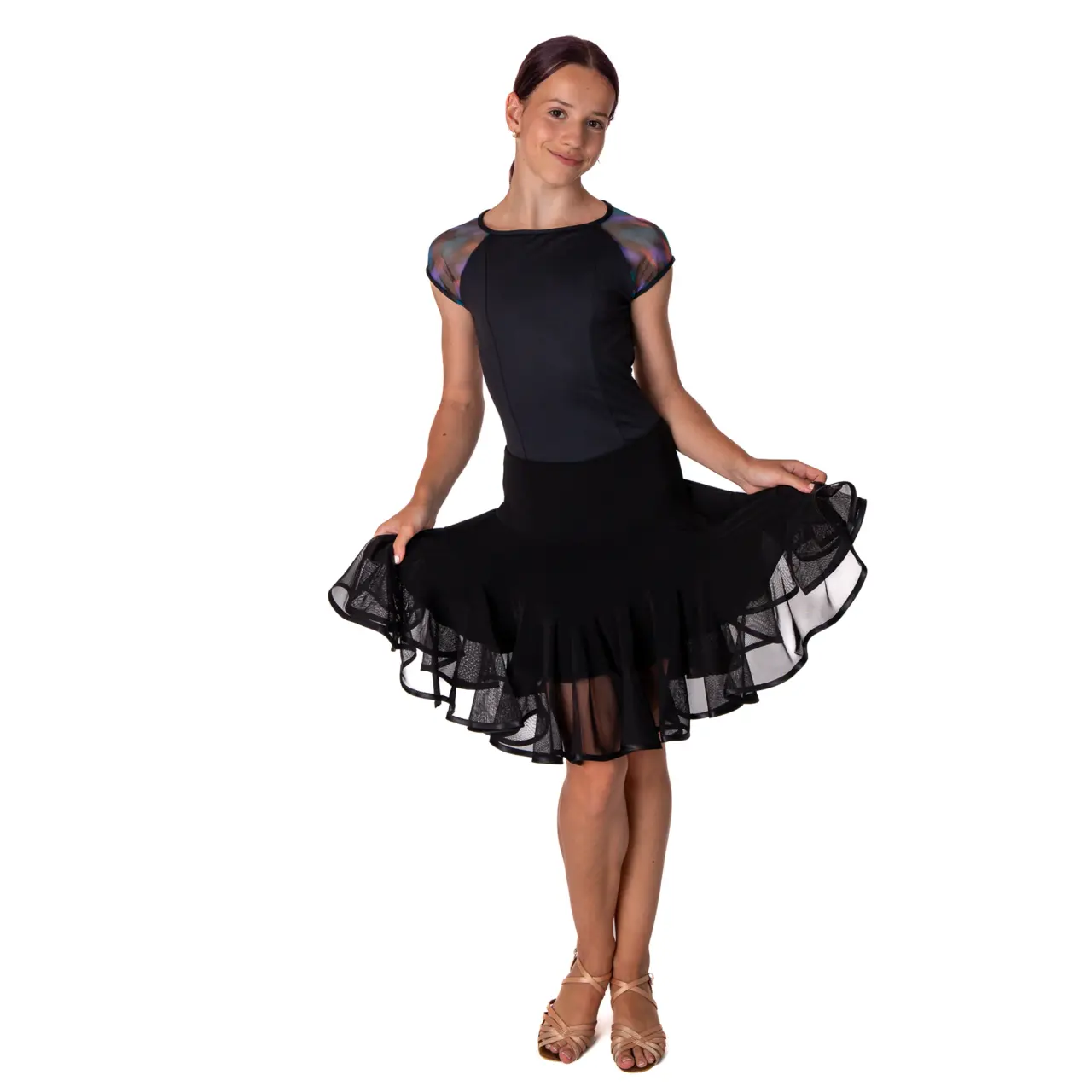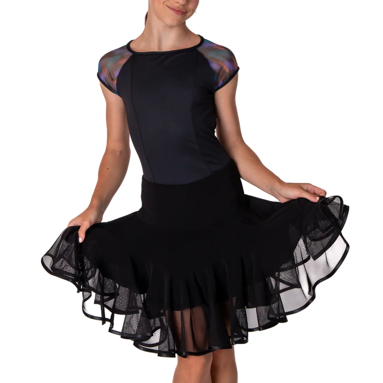 Er dreht sich wunderschön und sieht sehr elegant aus. Jede Hüftbewegung lässt ihn mitschwingen. In der Taille ist ein flacher Gummibund eingenäht. Material: 100 % Polyester. Höschen sind inklusive. In kaltem Wasser mit einem milden Waschmittel waschen und frei an der Luft trocknen lassen.