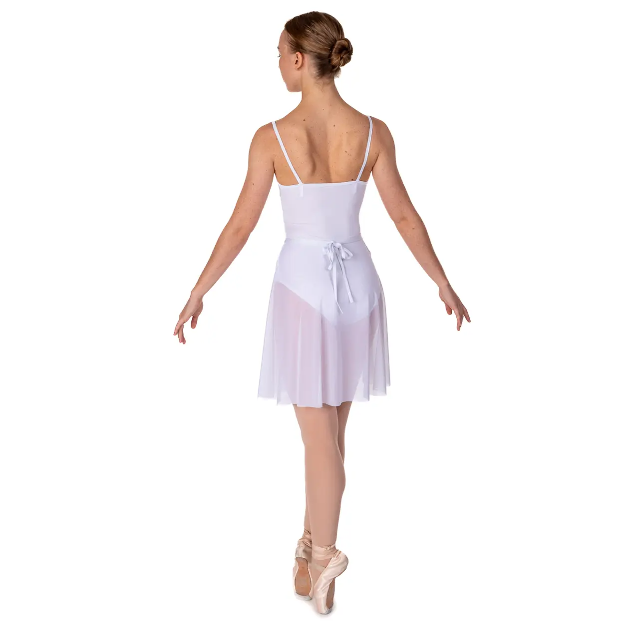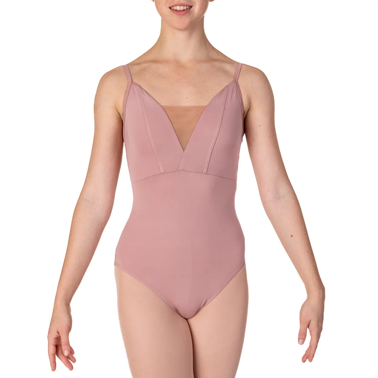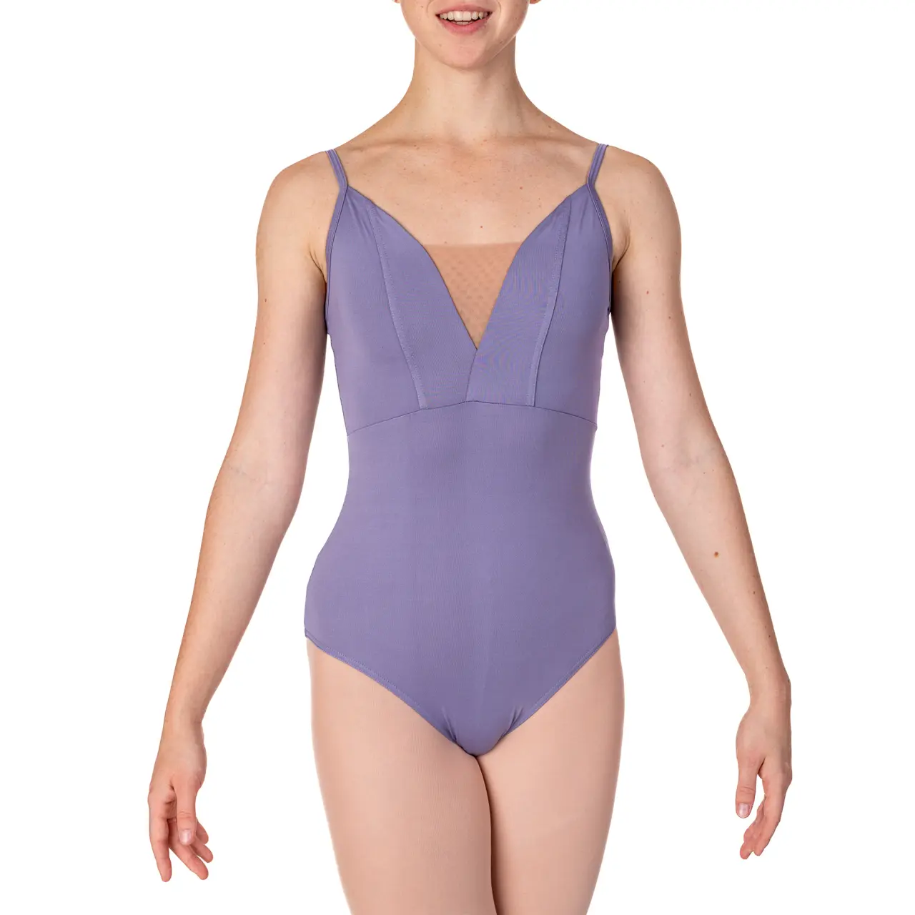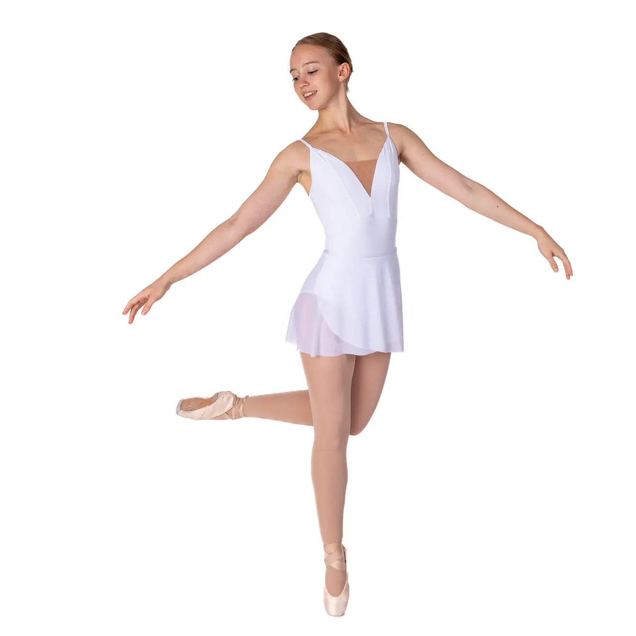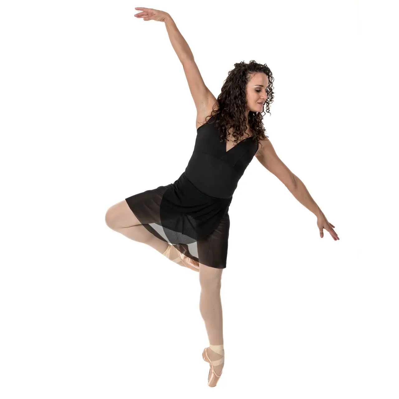 Trikot mit Spaghettiträgern. Auf der Brust befindet sich ein V-Ausschnitt, der mit Stoff in Hautfarbe gefüttert ist. Dieses Modell vermittelt den Eindruck von Kostümen, die häufig im klassischen Tanz verwendet werden. Das Material Polyamid und Micromesh wird von Hand in kaltem Wasser mit einem milden Waschmittel gewaschen und zum Trocknen frei aufgehängt.