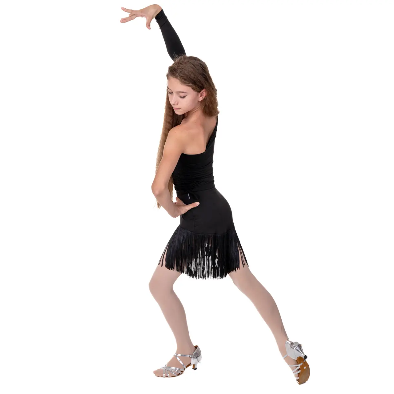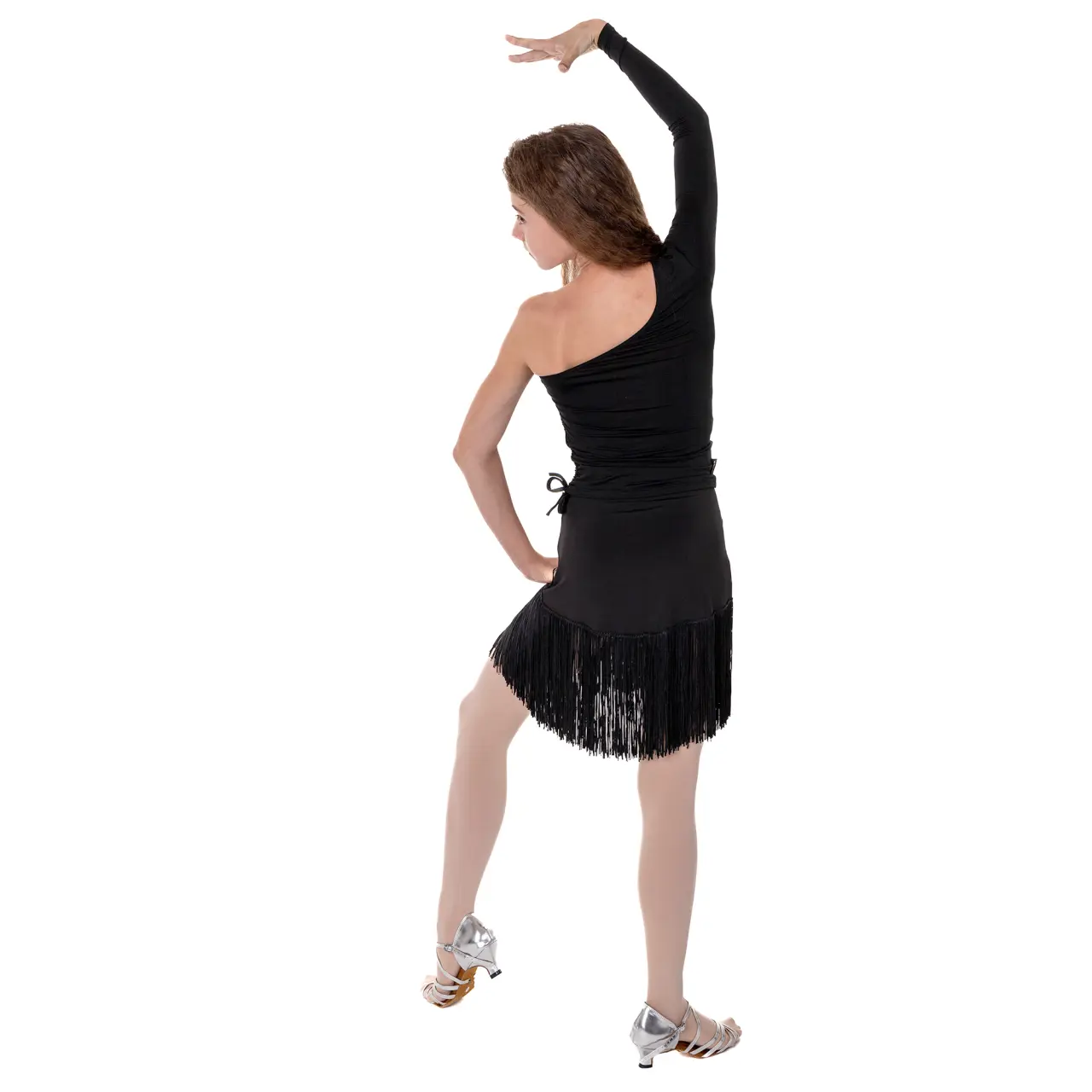 Top mit einer freien Schulter hat an der Seite ein kleines Detail, eine Kordel zur Längenanpassung. Es besteht aus angenehm elastischem Material, Polyamid. Es wird in kaltem Wasser gewaschen und an der Luft getrocknet.