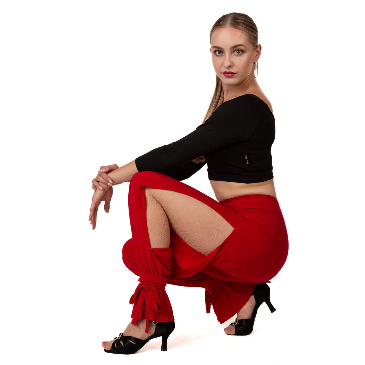 Ein feiner, elastischer, leichter Top, der feminin wirkt. Der U-Boot-Ausschnitt betont den Hals,, der freiliegende Bauch und die Dreiviertelärmel betonen die Bewegung der Taille und der Arme. Material: Mikropolyamid. Er wird von Hand in kaltem Wasser gewaschen und zum Trocknen frei aufgehängt.