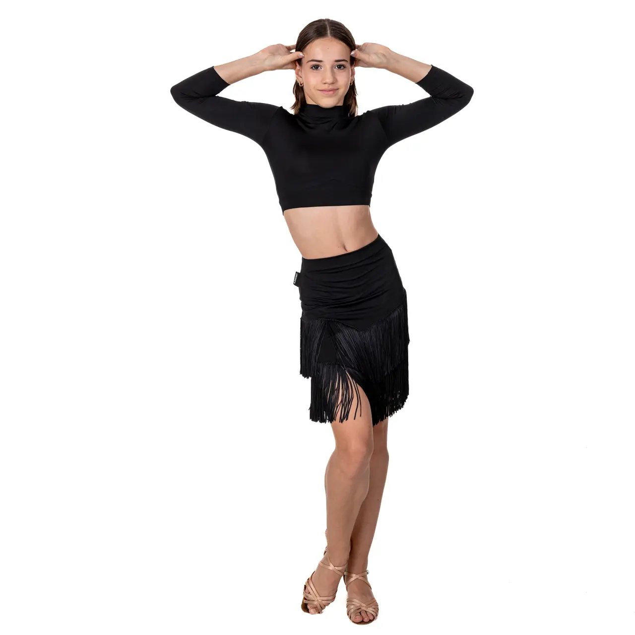 Der stilvolle Tanzrock für Mädchen mit Fransen Kaia Fringe ist ideal für das Training lateinamerikanischer Tänze.