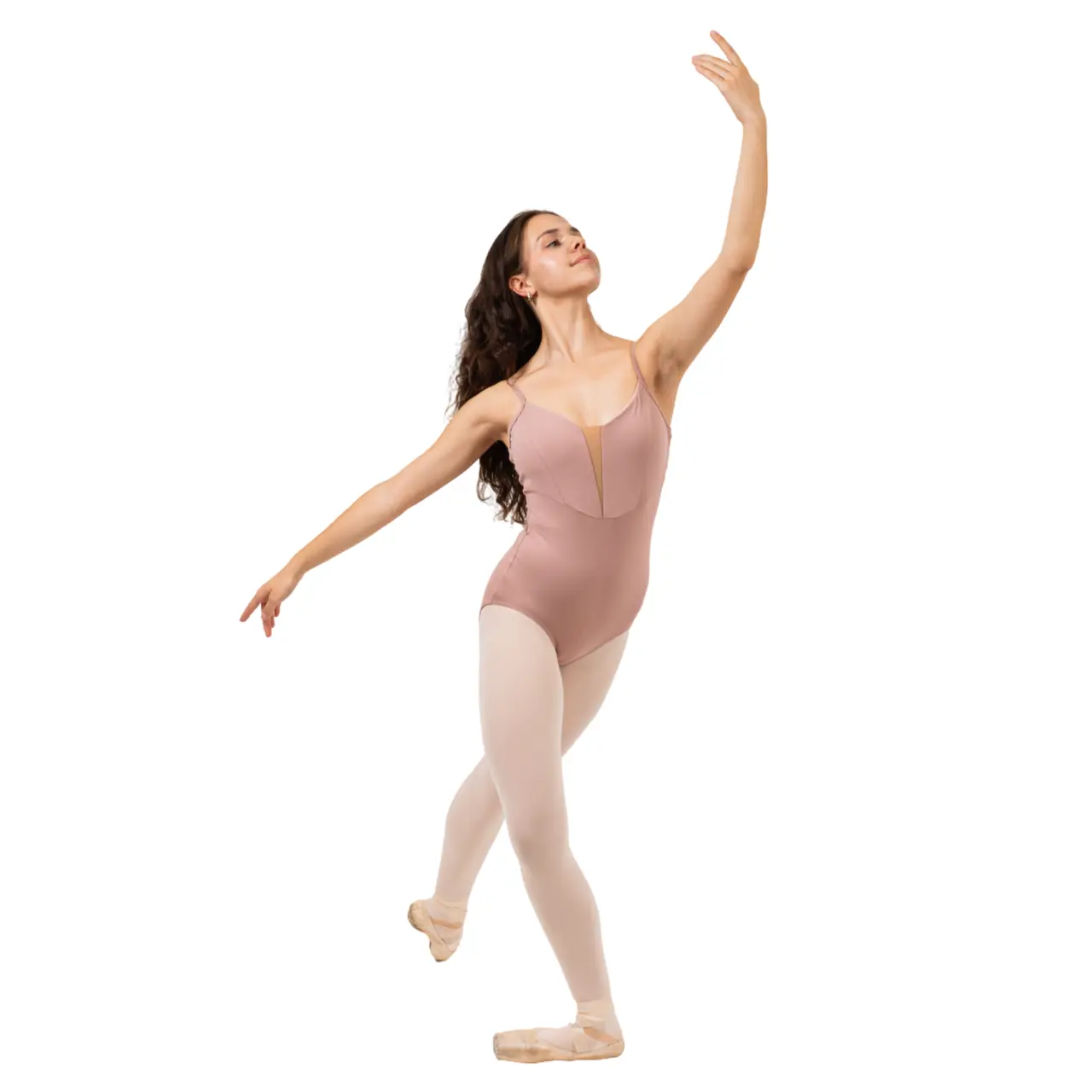 Ein elegantes und zeitloses Trikot, entworfen für Tanz- und Ballettzwecke. Zarte, dünne Träger und ein klassischer Schnitt betonen die weibliche Silhouette, während der vordere V-Ausschnitt mit eingesetztem hautfarbenem Zwickel dezent wirkt und die obere Körperlinie optisch verlängert. Am Rücken zeichnet sich das Trikot durch einen bogenförmigen Ausschnitt aus, der dem Modell Leichtigkeit und Anmut verleiht.