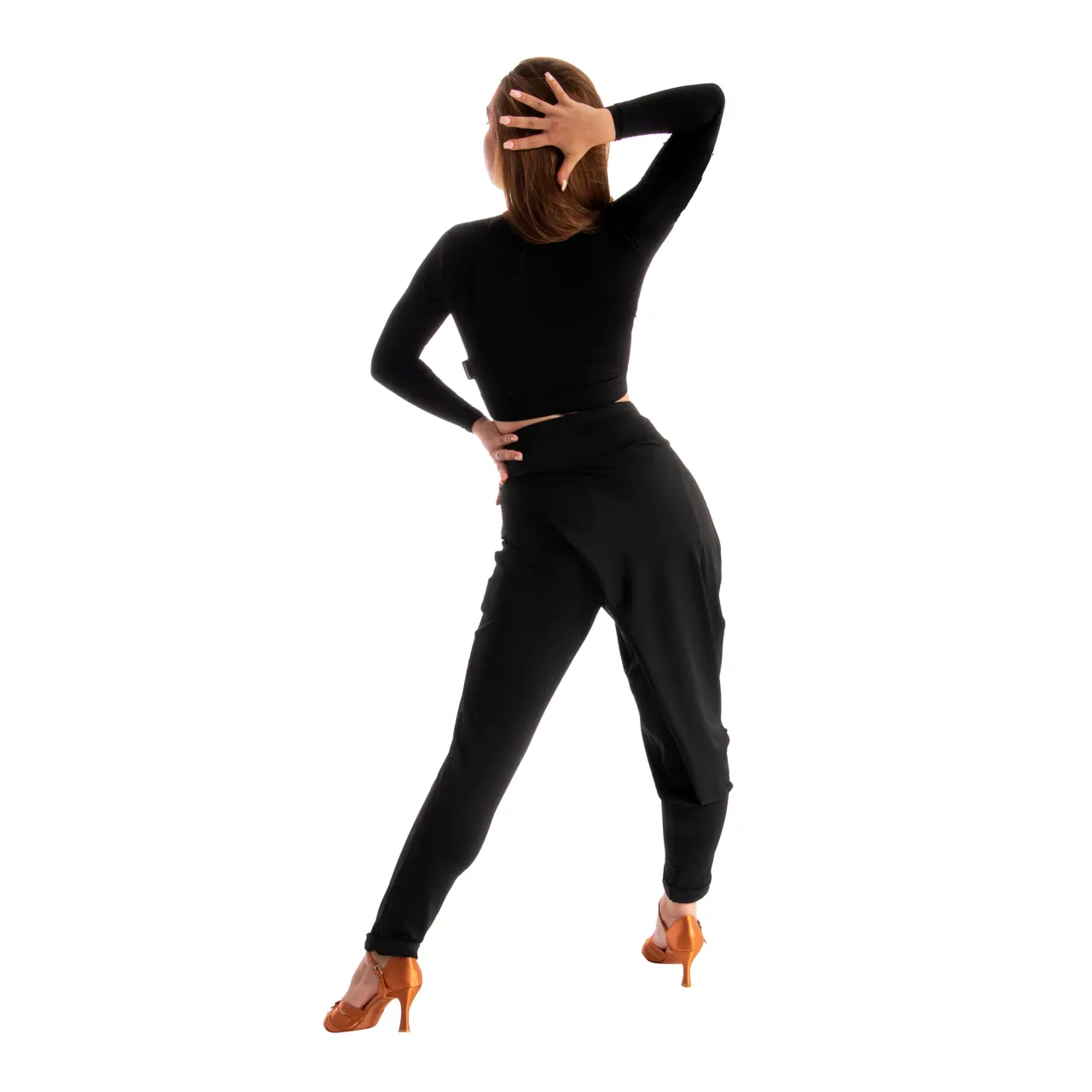 Die Trainingshose Lori ist für Ihre Bedürfnisse entworfen. Der asymmetrische Schnitt zieht nicht nur Aufmerksamkeit auf sich, betont Ihre Figur, sondern bietet dank des verwendeten Stretchmaterials zugleich Flexibilität, die beim Tanzen unerlässlich ist. Sie eignet sich für Salsa-, Bachata-, Kizomba- und lateinamerikanische Tanztrainings.