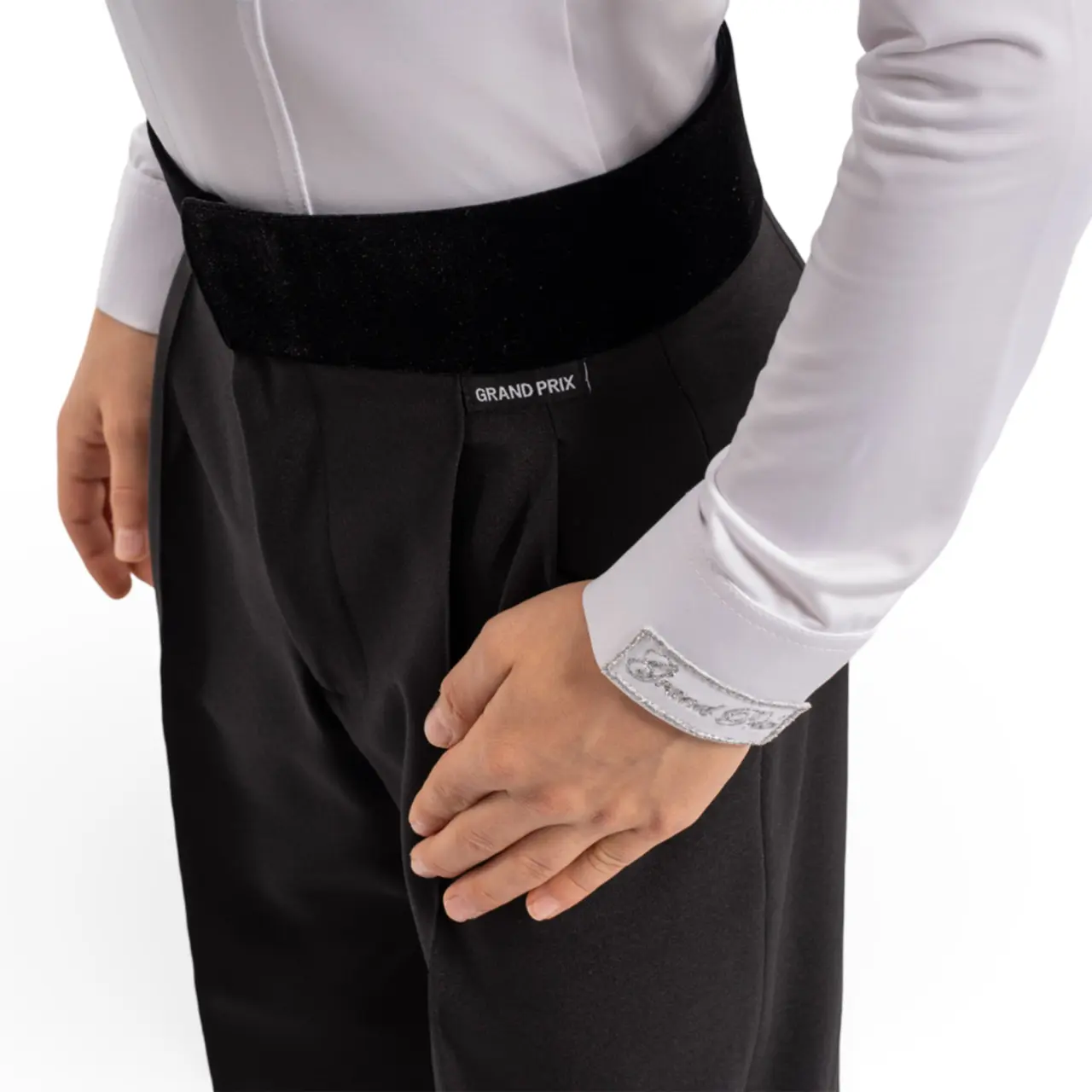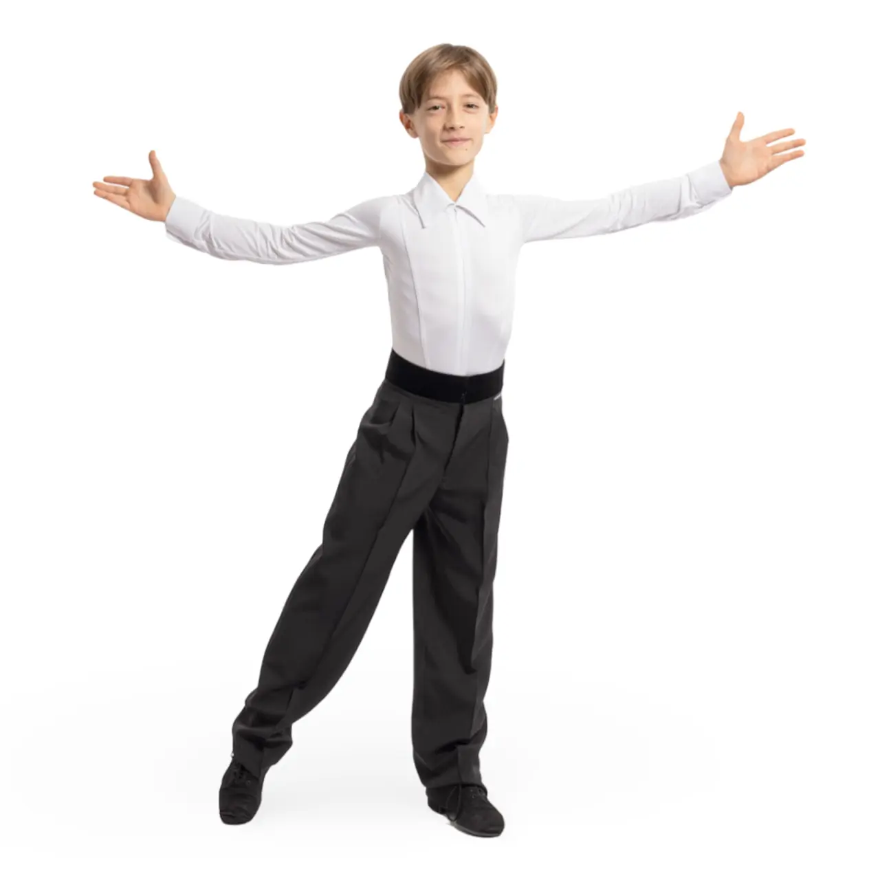 Ideal für Trainings und auch Wettbewerbe von Tanzanfängern, die Hose ist so konzipiert, dass sie Komfort und Bewegungsfreiheit bietet. Die Vorderseite wird durch feine Falten ergänzt, die ein angenehmes Tragegefühl und einen eleganten Fall des Stoffes während des Tanzes gewährleisten.