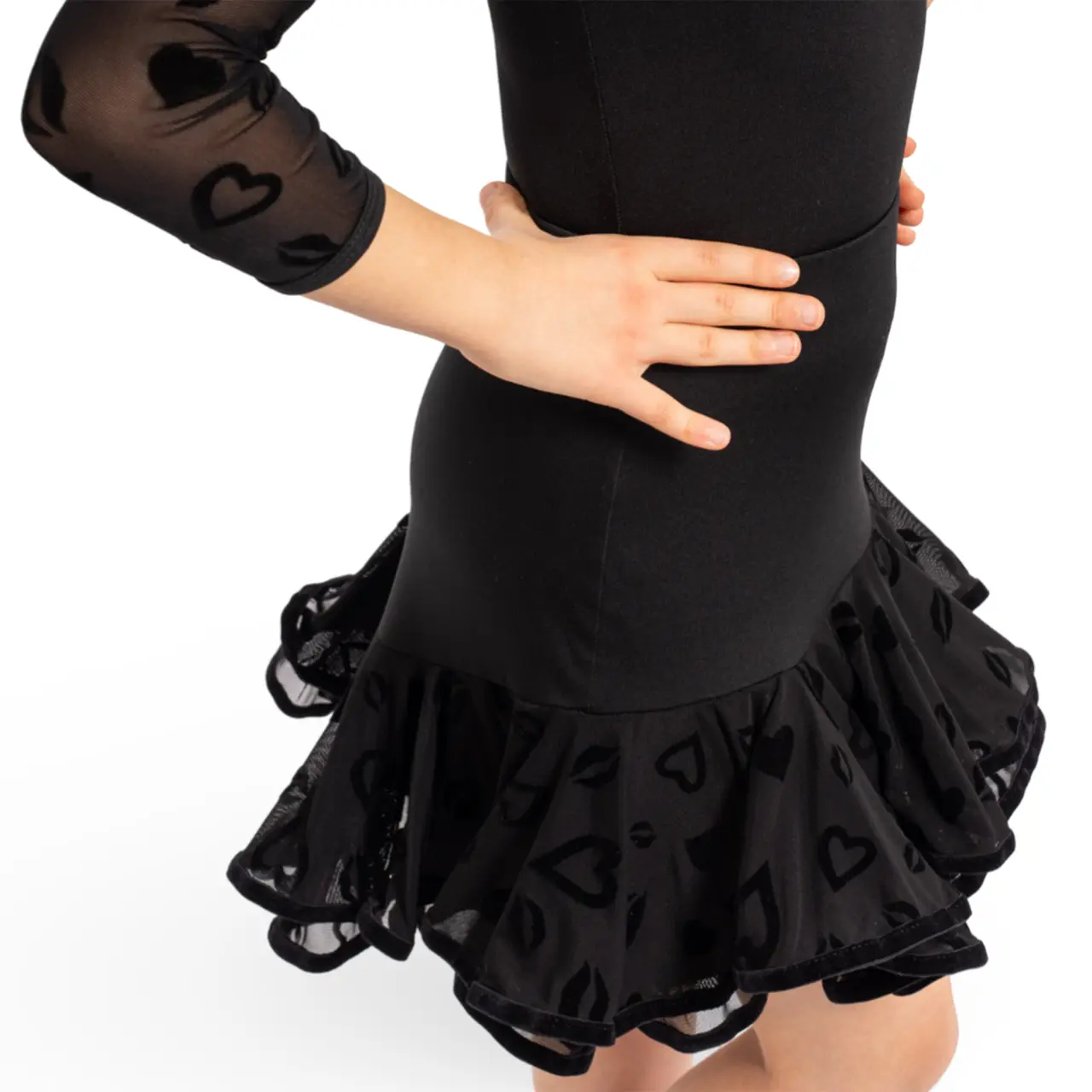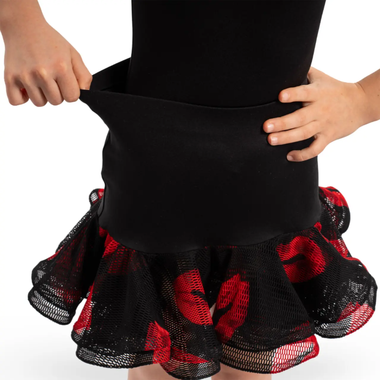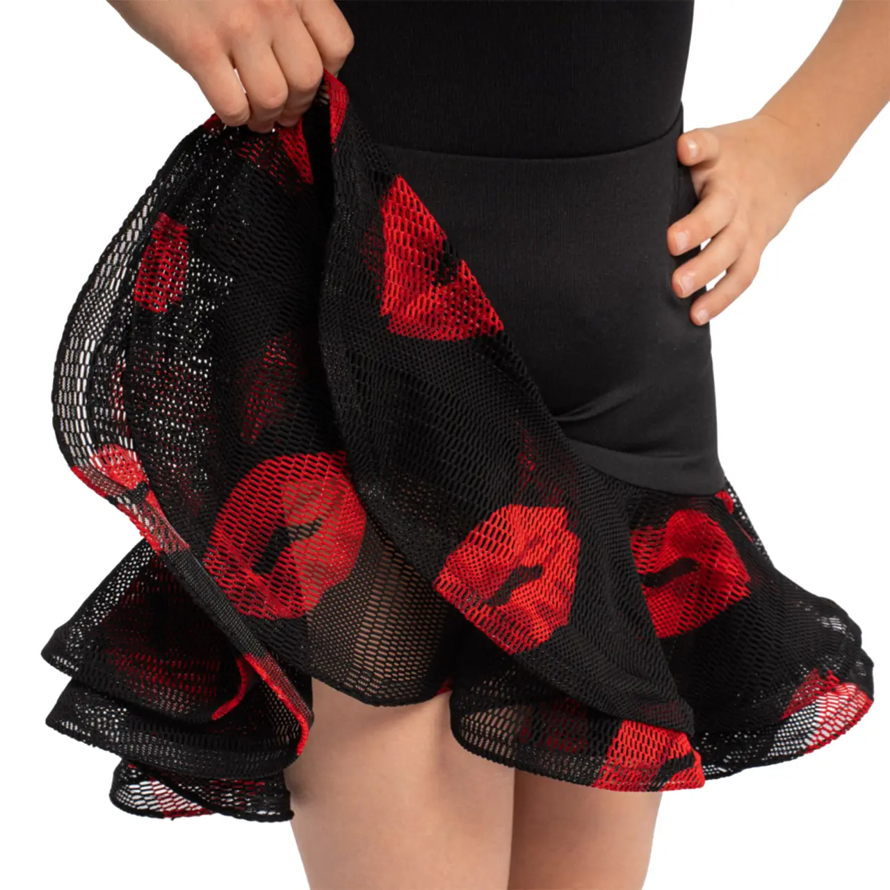 Mit fröhlichen Mesh-Rüschen mit Küsschenmuster zieht das Trainingsröckchen Blicke und Aufmerksamkeit auf sich. Dank des elastischen Materials und des bequemen Schnitts bietet Ruby nicht nur ein angenehmes Aussehen, sondern auch uneingeschränkte Freiheit bei jedem Tanzschritt.