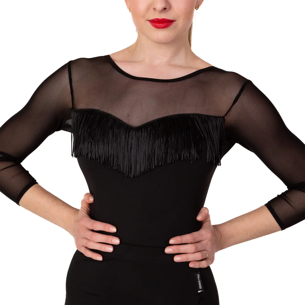 Elegant, raffiniert, genäht aus einer Kombination aus Fransen, Mesh und einem angenehmen, zugleich elastischen Material: 90% Polyamid und 10% Elastan.