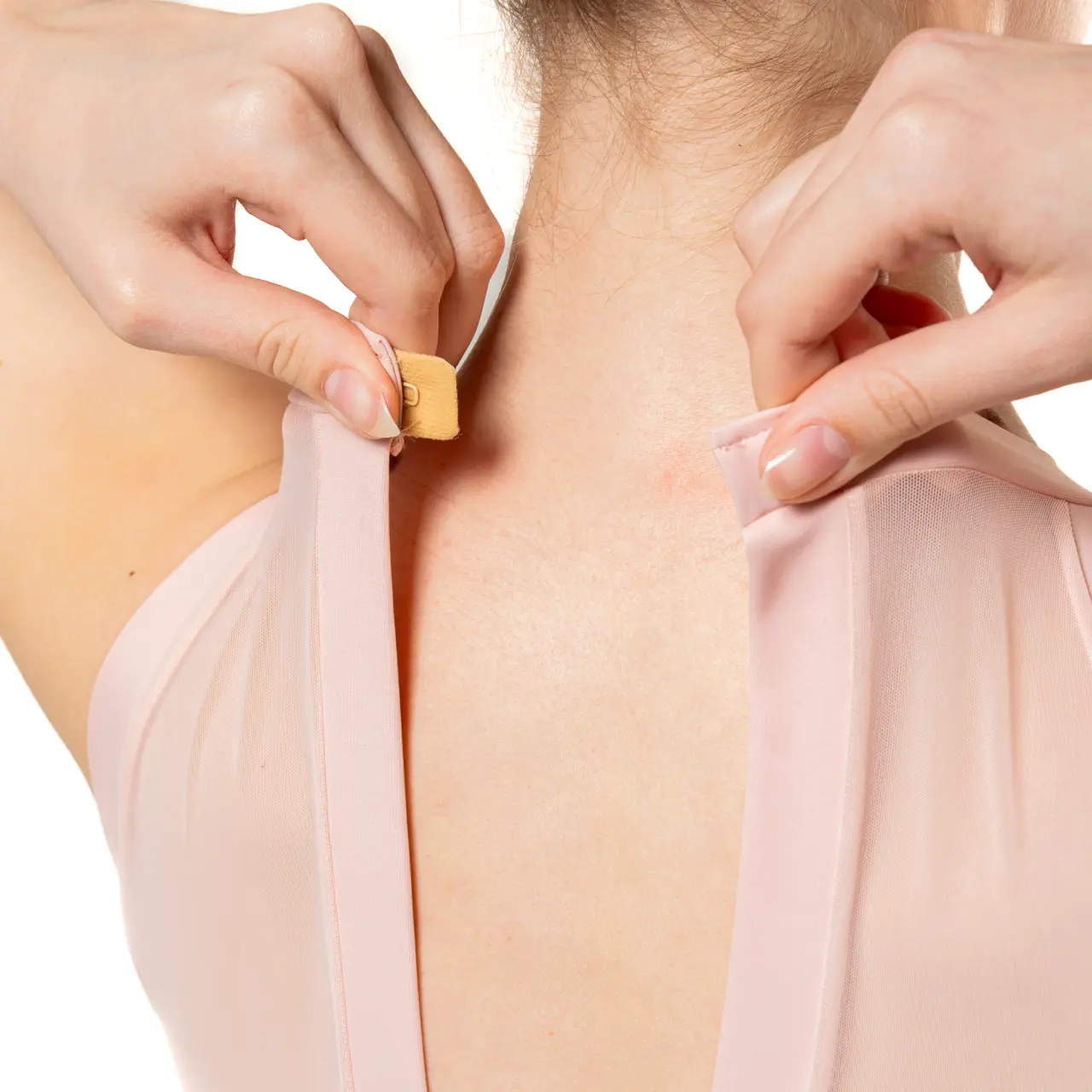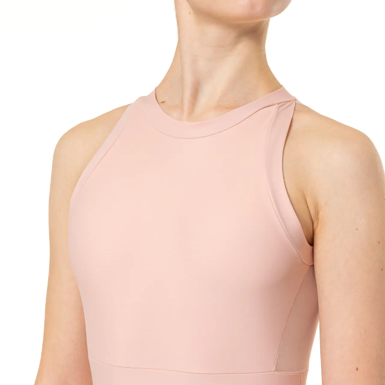 Der Stehkragen-Schnitt mit feinen Tülldetails am Rücken und an den Seiten verleiht einen Hauch von Weiblichkeit und Raffinesse. Das Vorderfutter, weich im Griff, bietet hervorragenden Komfort und ermöglicht freie und selbstbewusste Bewegungen. Das Material, aus dem das Tanztrikot gefertigt ist, enthält recycelten Lycra-Stoff.
