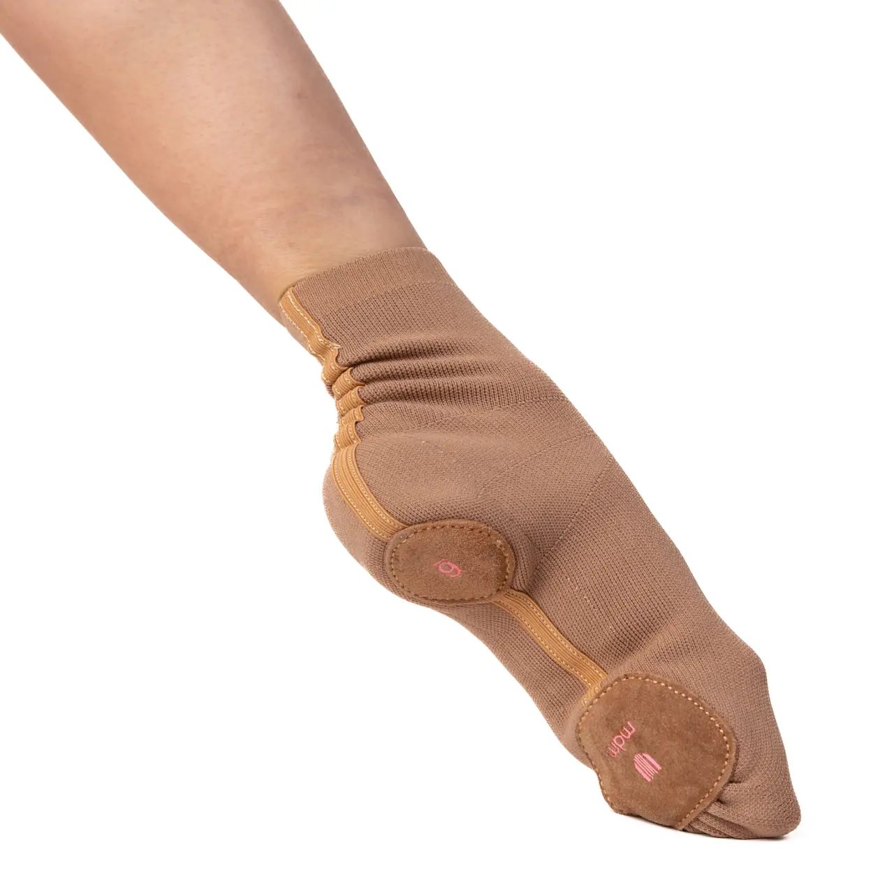 Das Modell Transit von MDM ist die perfekte Verbindung von Socke und Schuh, Komfort und Unterstützung. Sie sind geeignet für zeitgenössische Tänzer, die schon lange nach der perfekten Kombination aus Schuhwerk suchen, das den Fuß bei Drehungen und Gleiten schützt und gleichzeitig ermöglicht, den Boden zu "fühlen" . Innen ist ein Neoprenteil eingenäht, das die Ferse schützt und formt. Unter den Zehenballen befindet sich eine Wildledersohle. Für breite Füße empfehlen wir eine Nummer größer.