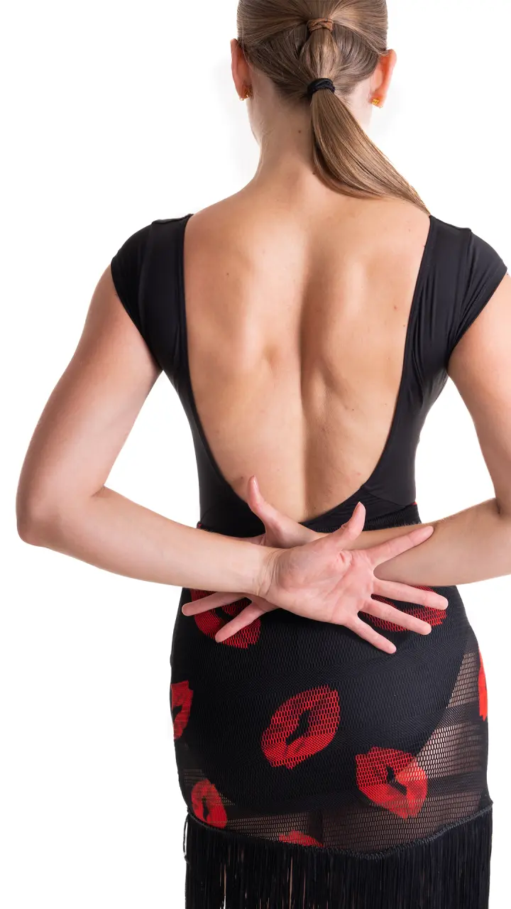 Mirella Ballroom Damen-Trikot mit kurzem Ärmel aus der Kollektion "das kleine Schwarze" ist ein Klassiker, der in Ihrer Tanzgarderobe nicht fehlen sollte. Vorne sorgt ein tieferer V-Ausschnitt für eine schmeichelhafte Optik bei breiteren Schultern. Es ist leicht gerafft und durch vertikale Nähte betont, die die Taille einrahmen. Der tiefere Ausschnitt lässt den Rücken schön zur Geltung kommen. Das Material gewährleistet dank seiner Zusammensetzung Farbechtheit und Form auch nach mehreren Wäschen. 90% Nylon und 10% Spandex. In kaltem Wasser mit einem milden Waschmittel waschen und frei trocknen lassen.