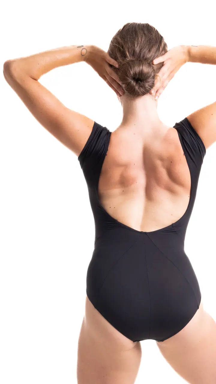 Mirella Schwarzer Leotard mit kurzen Ärmelchen, Damen-Trikot