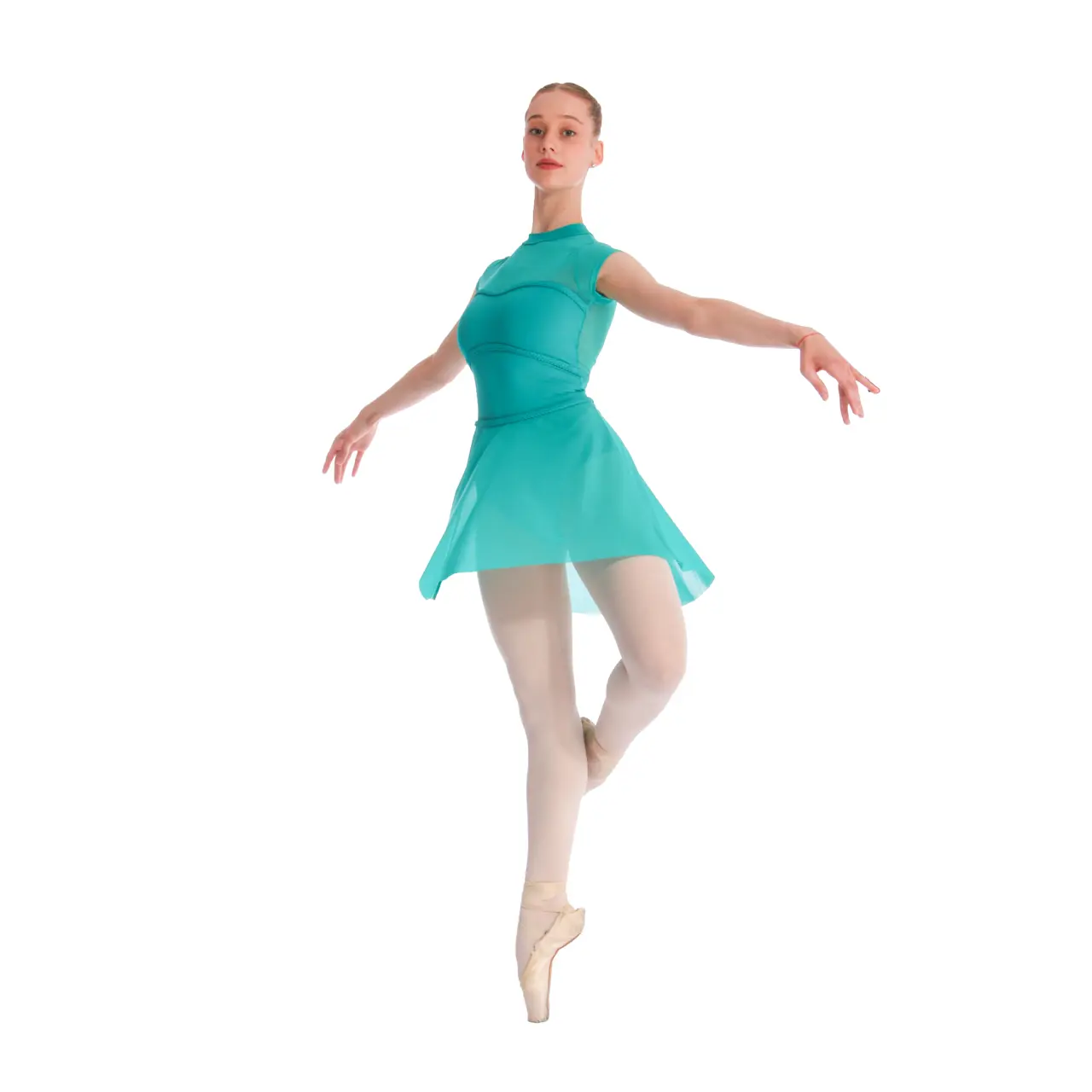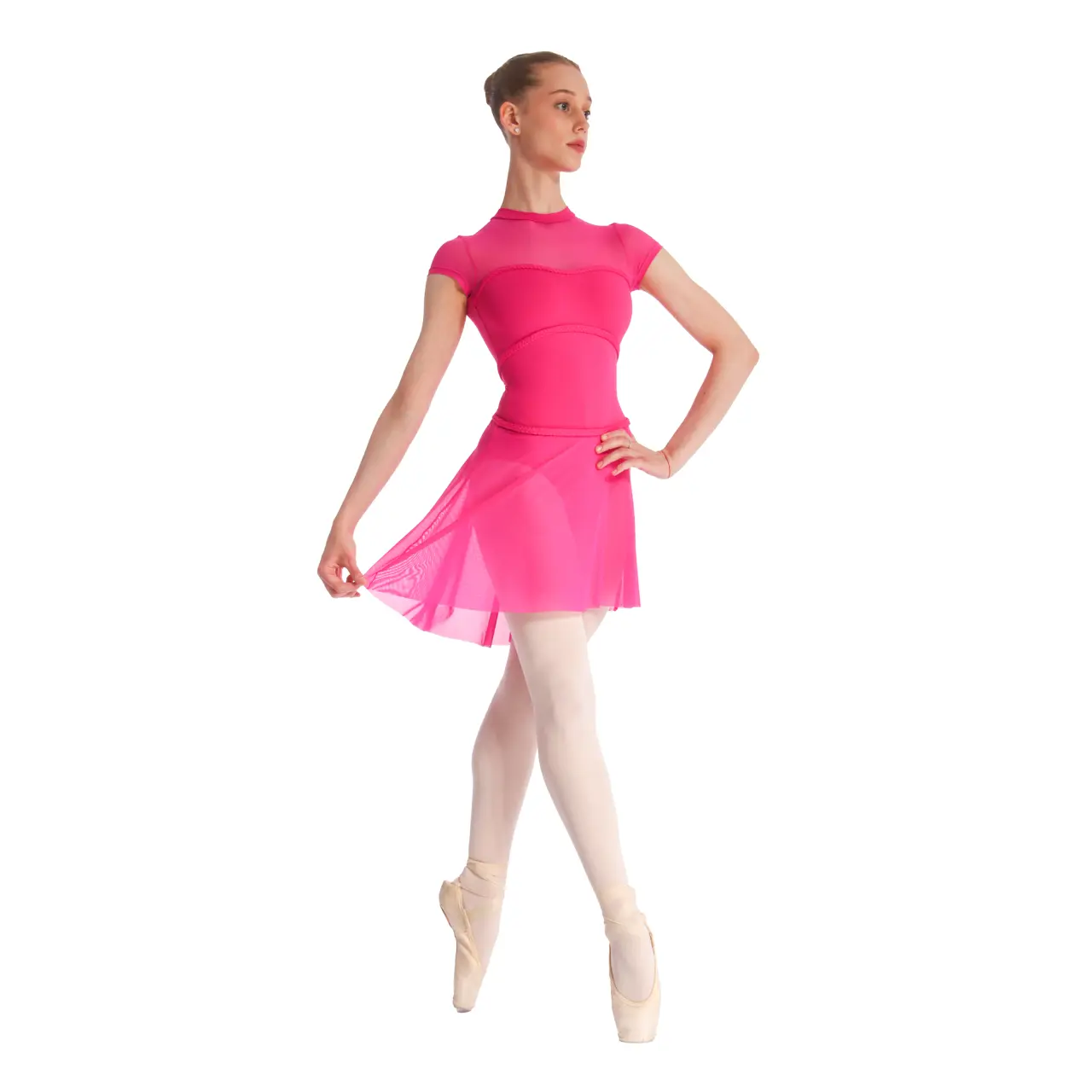 Das Mesh-Gewebe, das Brust und Schultern bedeckt, geht weiter in eine wunderschön geformte Silhouette mit "Herz"-Ausschnitt über. Das Detail der geflochtenen Borte unter der Brust und am Rücken ist eine Kleinigkeit, die einen Hauch von Raffinesse verleiht.