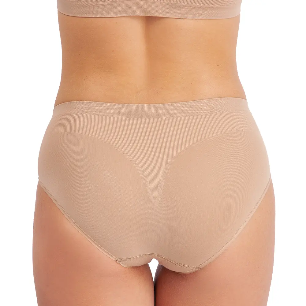 Nahtlose Unterhosen sind weich, hergestellt aus leichtem Tactel 90% und 20% Elasthan. Sie passen sich jeder Figur an und sind unter Kleidern nicht sichtbar.