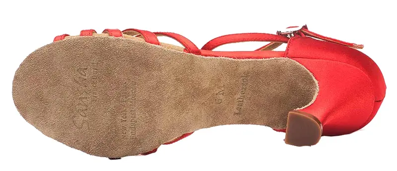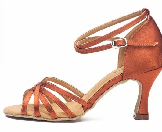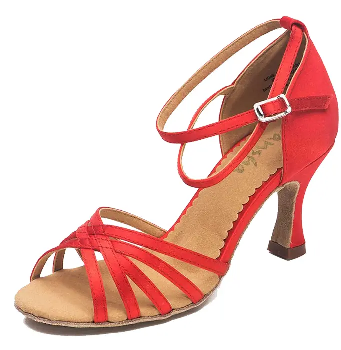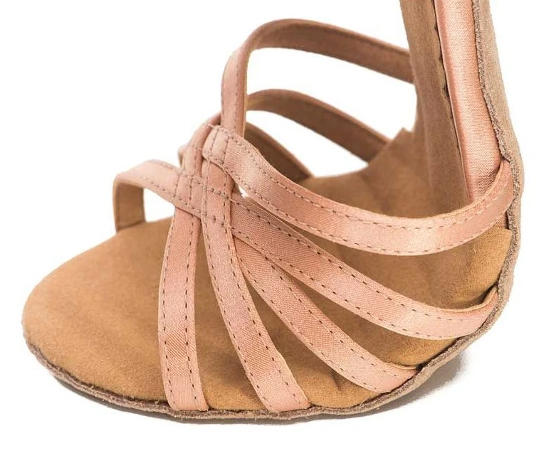 Lateinschuhe mit feinen Riemchen. Sie passen wunderschön auf einen mittelbreiten und schmalen Fuß. Der Verschluss um den Knöchel hält die Ferse fest im Tanzschuh. Sie sind federleicht, schlicht und zugleich sexy. Der Absatz ist 7,4 cm hoch.