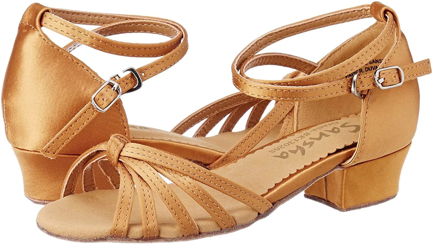 Damen-Ballettstrumpfhosen mit kubanischem Absatz. Die Sohle ist aus gebürstetem Leder. Der 3,2 cm hohe Absatz in kubanischer Form sorgt für Komfort und Stabilität. Sie werden um den Knöchel geschlossen. Über den Spann verlaufen Satinbänder, die mit einem dekorativen Knoten zusammengezogen sind.