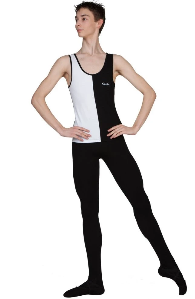 Ballettbekleidung für Männer. Trikot mit Fußteil ist aus Baumwolle und Lycra gefertigt.