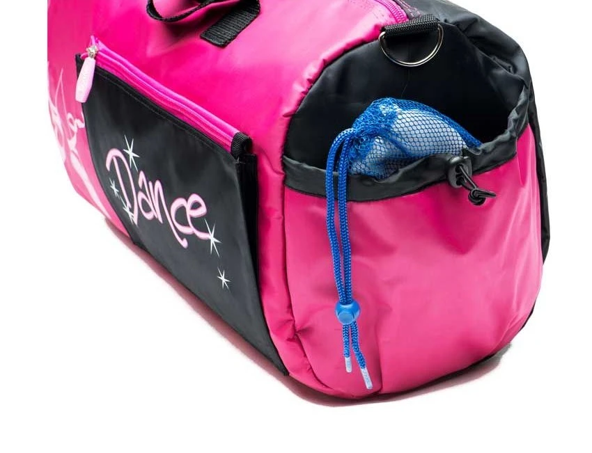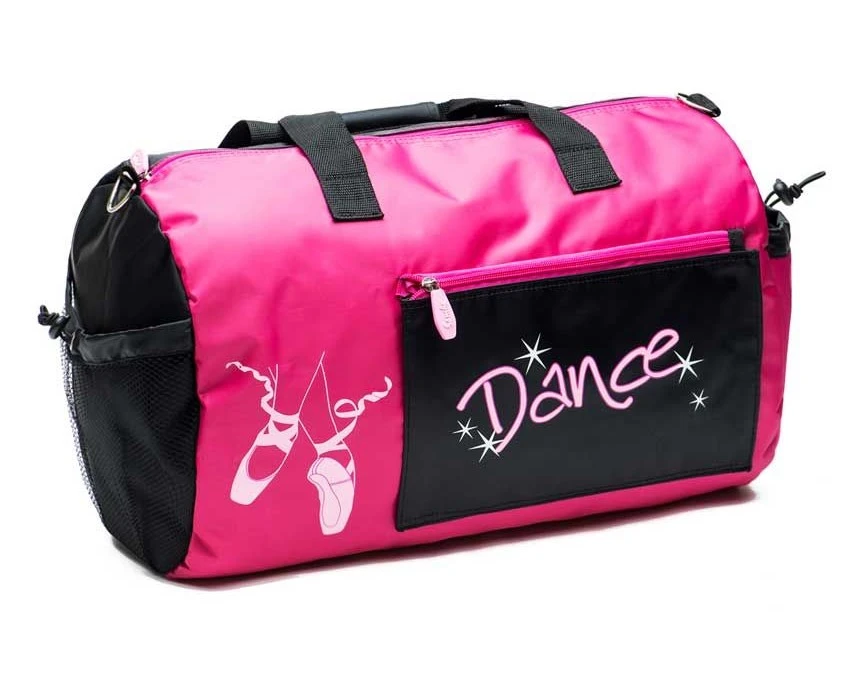 Ovale Tasche mit Spitzenschuh-Motiv und der Aufschrift Dance, in die wirklich sehr viel hineinpasst. Sie ist ideal für Trainings, Sie packen alles Nötige hinein, auch für kurze Reisen.