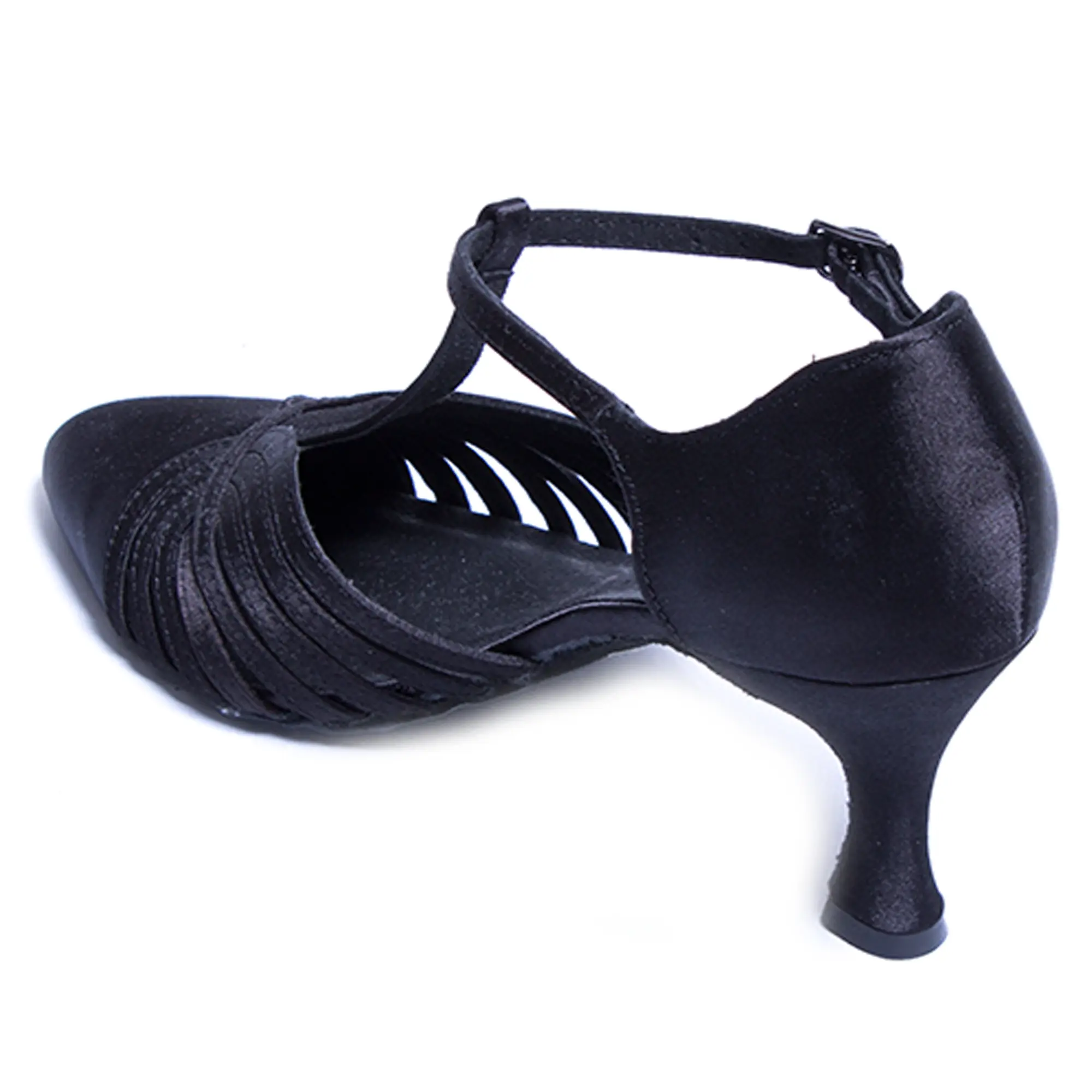 Elegante Tanzschuhe Luisa sind für den Gesellschaftstanz konzipiert und verbinden Komfort mit raffiniertem Design. Der Vorderbereich hat eine geschlossene Spitze, verziert mit feinen Ornamenten, wodurch diese Schuhe die ideale Lösung für Damen sind, deren Zehen in offenen Sandaletten dazu neigen, nach vorne zu rutschen.