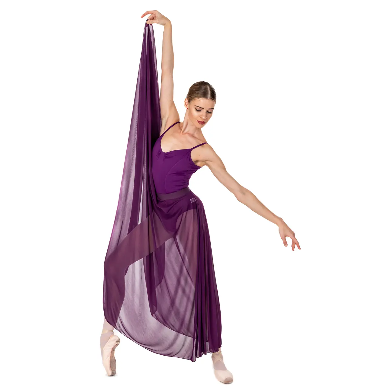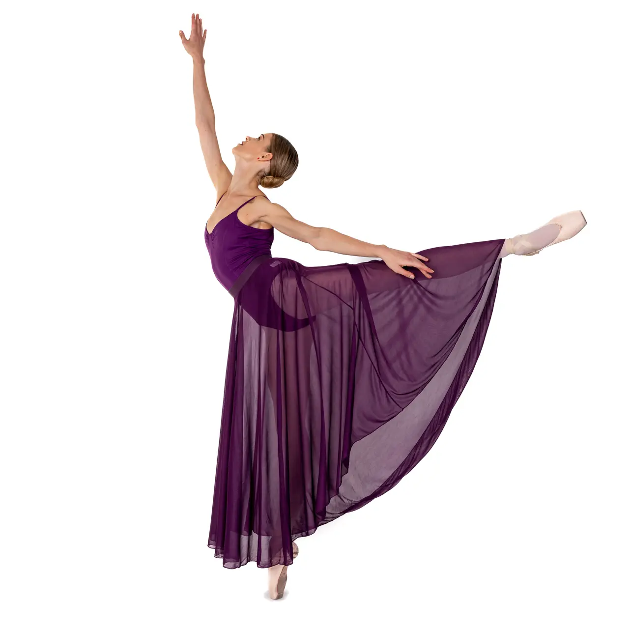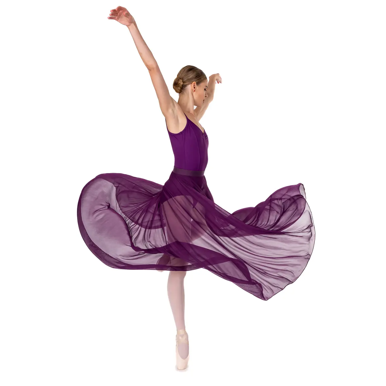 Der ätherische Rock rundet die Bewegung wunderschön ab. Er ist aus 100% Polyester gefertigt. Er verleiht der Figur der Tänzerin Charme. Der Bund ist aus Gummi gefertigt, der mit Strickstoff überzogen ist. Das Gummi im Bund ist nicht besonders elastisch, eher fest. Er wird von Hand in kaltem Wasser mit einem milden Waschmittel gewaschen und zum Trocknen frei aufgehängt.