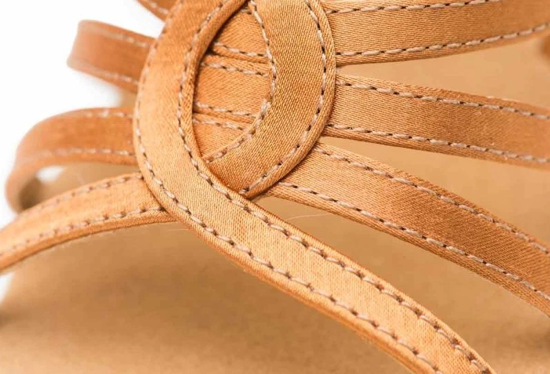 Wunderschöne, romantisch wirkende Schuhe für lateinamerikanische Tänze vom Hersteller Sansha. Der Absatz ist 7,4 cm hoch. Das Obermaterial ist hochwertiger Satin, die Sohle ist aus feinem, bequemem, gebürstetem Leder.