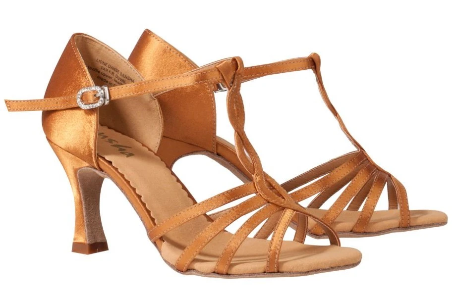 Wunderschöne, romantisch wirkende Schuhe für lateinamerikanische Tänze vom Hersteller Sansha. Der Absatz ist 7,4 cm hoch. Das Obermaterial ist hochwertiger Satin, die Sohle ist feines, bequemes, gebürstetes Leder.