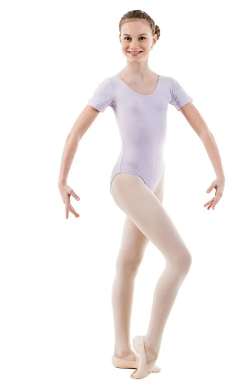 Kinder-Balletttrikot mit kurzen Ärmeln. 92% bestehen aus Baumwolle und 8% aus Lycra. Im Vorderteil ist es gefüttert.