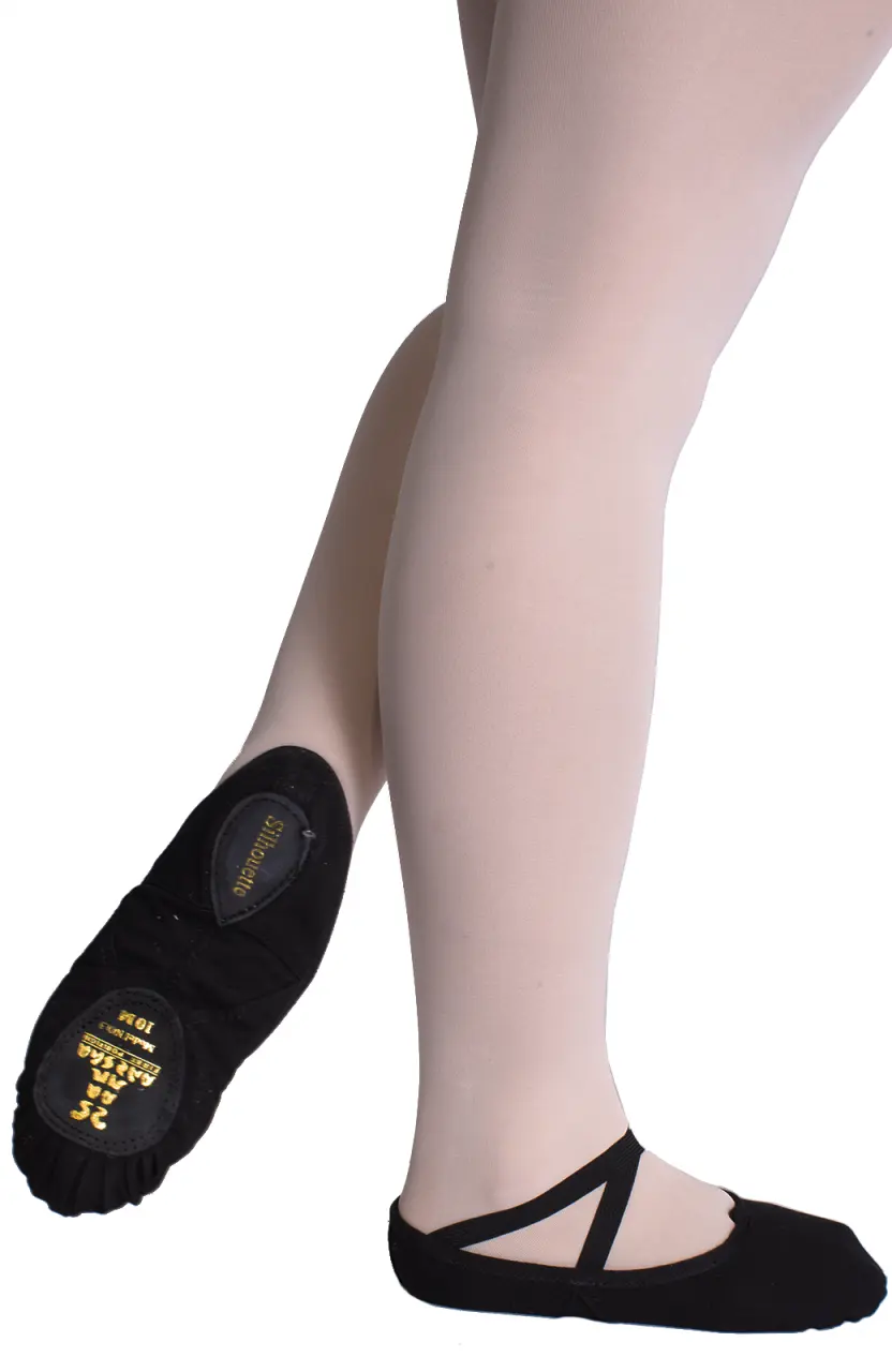 Sansha Silhouette 3C - Damen-Tanzschläppchen für fortgeschrittene Tänzerinnen. Sie sind aus einem speziellen Canvas gefertigt, das die Konturen Ihres Fußes nachzeichnet. Elastische Bänder sorgen zusammen mit dem Gummizug dafür, dass die Schläppchen gut am Fuß sitzen. Ein niedriger Rist erzeugt eine elegante Linie der Ballettschläppchen. Doppelte Nähte an den Nähten sorgen für deutlich höhere Strapazierfähigkeit des Schuhs. Triangle – dreieckige Konstruktion für einen höheren Rist betont die wunderschöne Zeichnung des Fußgewölbes. Eine schützende Schaumstoffeinlage unter der Ferse dämpft Stöße und erhöht den Bewegungskomfort. Geteilte Sohle aus gespaltenem Leder – leather split sole – verbessert die Flexibilität des Schuhs beim Abrollen über den Ballen. Das Obermaterial ist Canvas, die Sohle ist aus Leder. Die Tanzschläppchen Sansha Silhouette 3C zählen zu den beliebtesten Ballettschläppchen ihrer Klasse. Bei einigen Größen sind keine Gummibänder angenäht. Diese müssen auf einfache Weise angenäht werden, mit zwei bis drei Stichen unter den Saum, in dem sich der elastische Gummizug befindet, der die Weite rundum reguliert. Das hängt immer von der Lieferung des Herstellers ab.