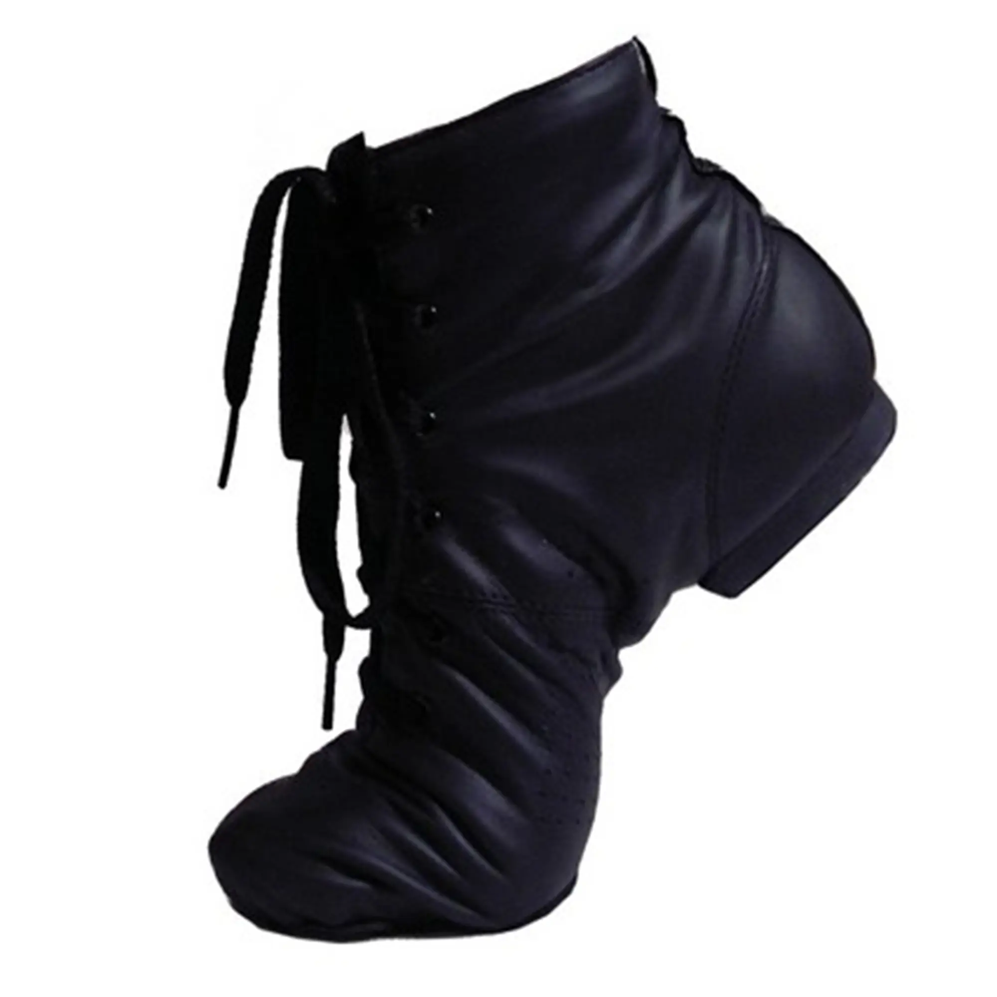 Stilvolle und hochwertige Jazzschuhe aus weichem Leder. Der hohe Schnitt mit Schnürung bis zum Knöchel bietet Halt und Stabilität, während die geteilte Sohle eine ausgezeichnete Flexibilität bei der Bewegung gewährleistet. Auf der Bühne wirken sie sehr elegant – die ideale Wahl für Tänzer, die eine Kombination aus Komfort und Stil suchen.
