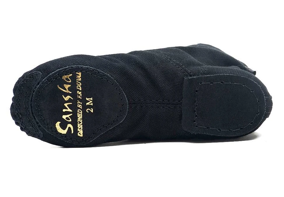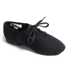 Jazzschuhe. Sie werden zum Schnüren bis zum Knöchel gefertigt. Das Obermaterial ist aus Canvas. Die geteilte Sohle betont das Fußgewölbe bei gestreckter Spitze.