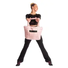 Einfache Schultertasche in Schwarz mit rosa Spitzenschuhen rundet das Trainingsoutfit von Mädchen schön ab. Die Tasche ist mit einem Reißverschluss verschließbar.