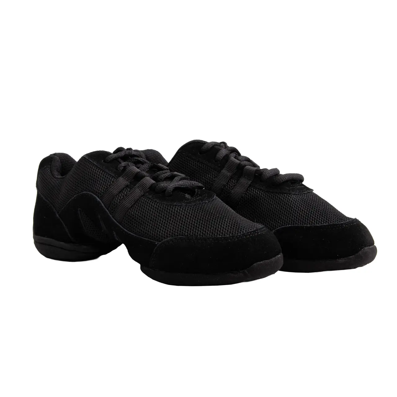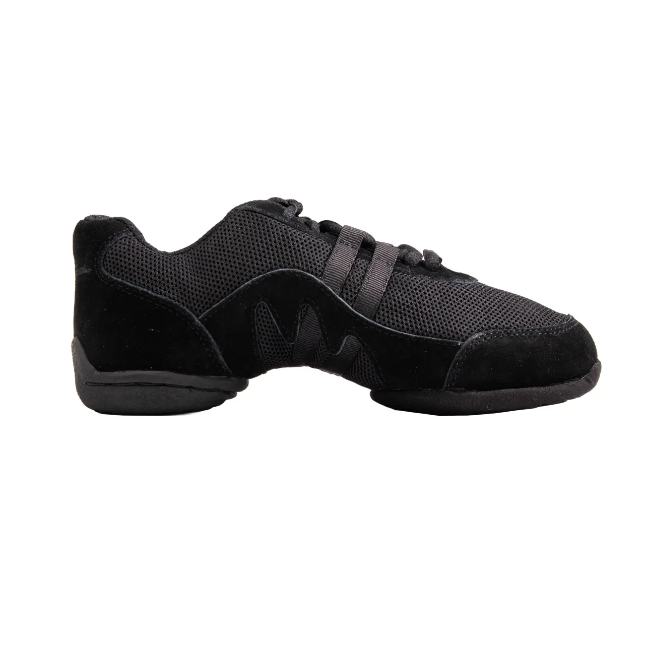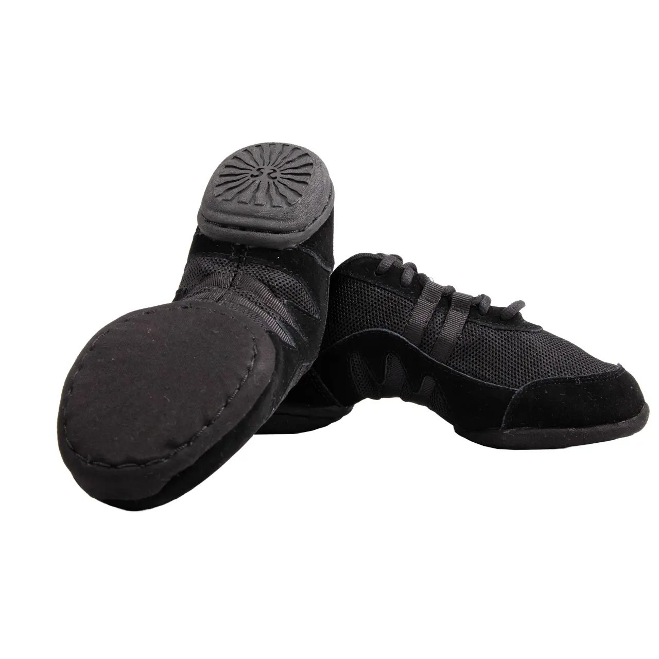 Tanz-Sneaker, das Obermaterial ist aus Wildleder. Die geteilte Sohle ist im vorderen Bereich mit Stoff überzogen. Unter dem Stoff befindet sich eine standardmäßige Gummisohle. Eines der Modelle, das am Fuß schön "sitzt".