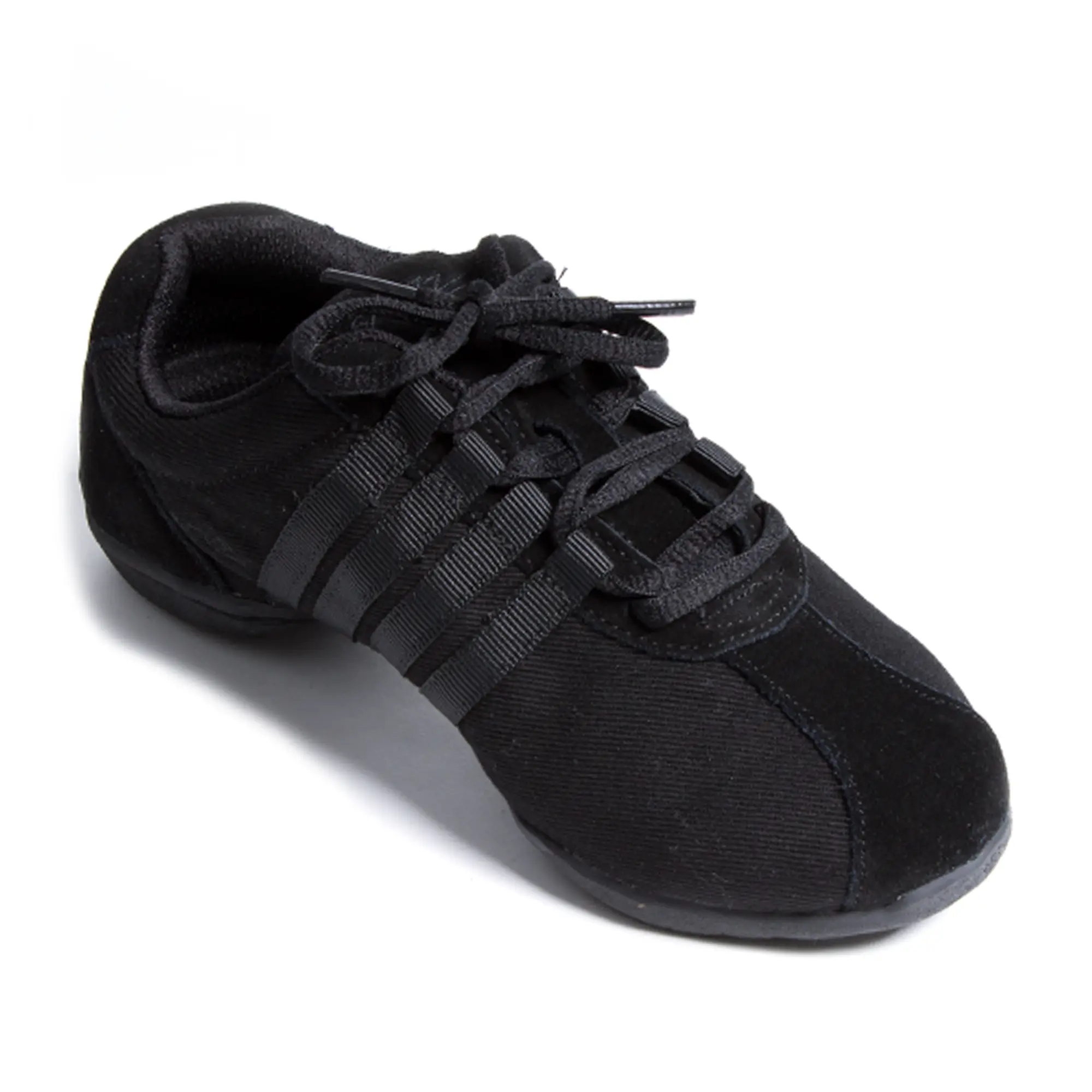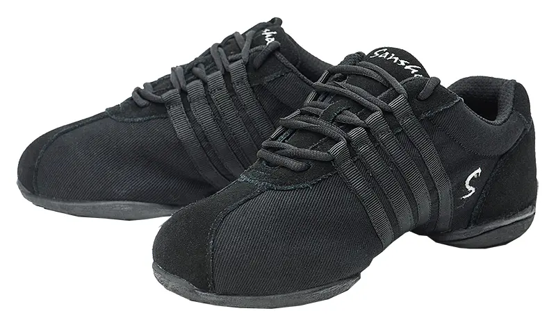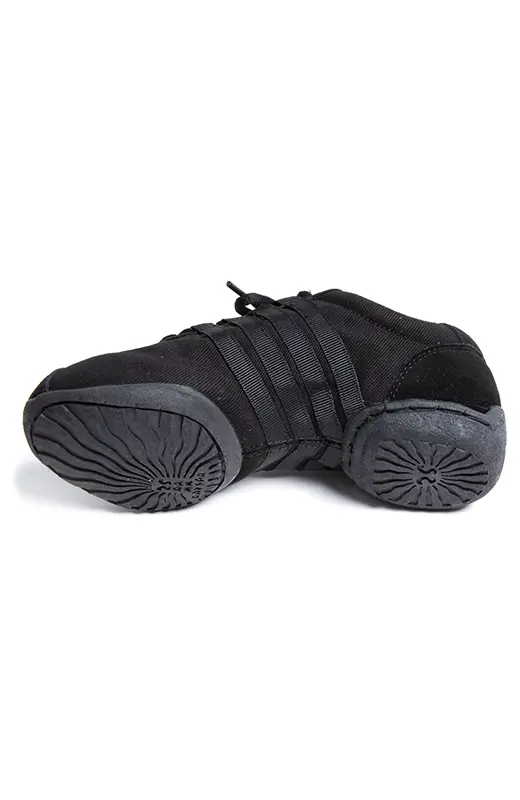 Die Dyna-Stie Tanzschuhe sind die ideale Wahl für anspruchsvolle Tanztrainings sowie Auftritte. Das Obermaterial besteht aus einer Kombination aus robustem Canvas und Wildleder; seitlich sind sie mit verstärkenden Riemen zur Unterstützung des Fußgewölbes ergänzt, die für mehr Stabilität während der Bewegung sorgen.