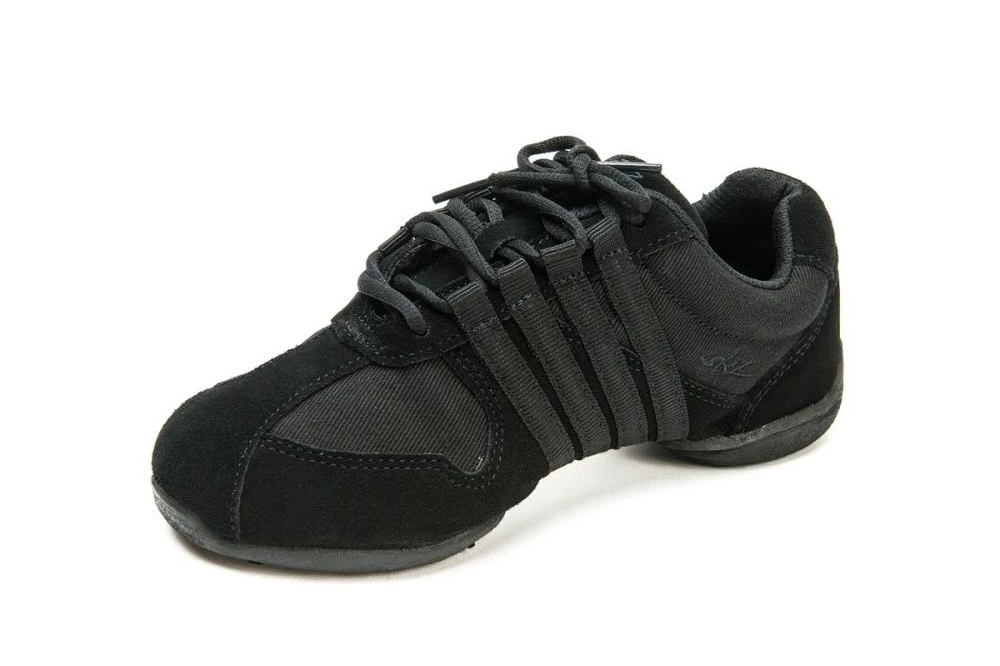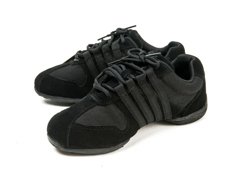 Tanzschuhe im "Sneaker"-Stil sind die ideale Wahl für Musicaltanz, Volkstanz, Zumba, Tango, Salsa und weitere dynamische Stile. Dieses Modell besteht aus einer Kombination aus robustem Canvas mit markanter Besatzkante aus Rauleder an der Zehenpartie und an den Seiten im vorderen Bereich, die ihre Strapazierfähigkeit erhöht und ihnen ein stilvolles Aussehen verleiht.