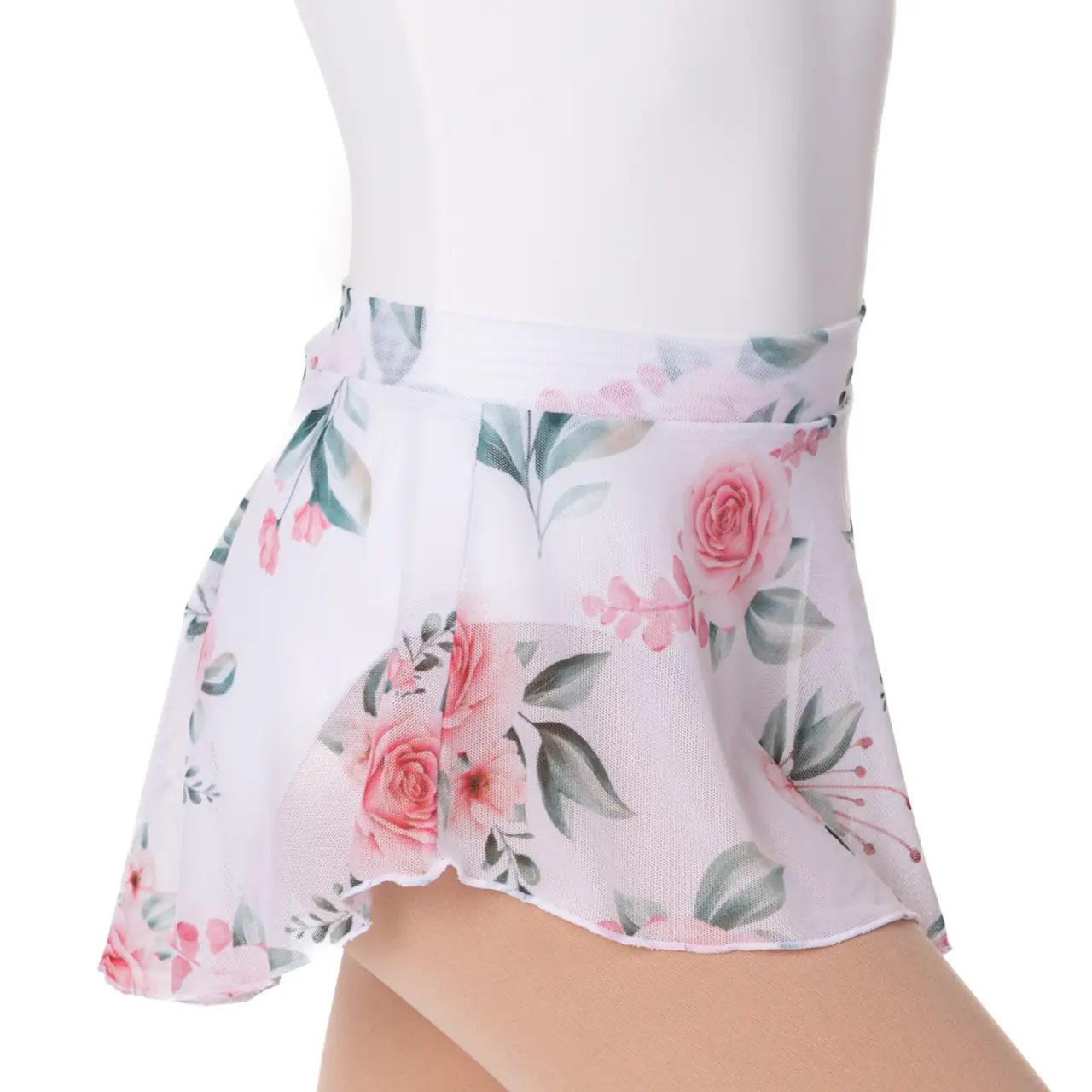 Röckchen, das über die Hüften gezogen wird. Es gehört zu den kürzeren, sehr beliebten Modellen. Dank der Länge und des Materials kann die Lehrkraft die korrekte Ausführung der Übungen perfekt beurteilen. Es ist aus elastischem Mesh gefertigt, einschließlich eines flachen Bundes. Muster mit mehreren Farben ermöglichen es, das Röckchen mit Trikots in verschiedenen Farbtönen zu kombinieren. Es wird ausschließlich von Hand mit einem milden Waschmittel gewaschen und frei trocknen gelassen, nicht bügeln. 90% Polyester und 10% Spandex.