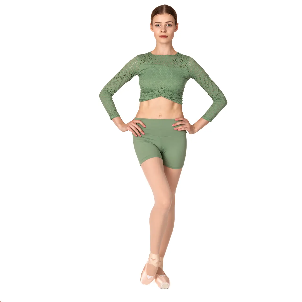 Crop-Top aus einer limitierten Edition, von einem der führenden Hersteller von Tanzbekleidung So Danca, mit 3/4-Ärmeln. Das luftige und elastische Material hat ein perforiertes Muster. Ideal für jede Art von Bewegungskurs.